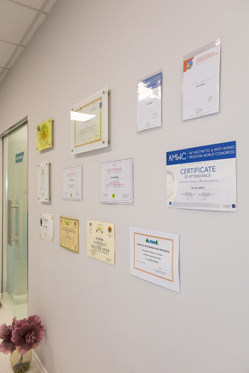 Të gjitha shërbimet dhe materialet dentare që përdorim në klinikën tonë janë të cilësisë më të lartë. Ne kemi zgjedhur të zbatojmë standardet ISO 9001 për t'i demonstruar të gjithëve cilësinë e menaxhimit sistematik të proceseve dhe shërbimeve shëndetësore të ofruara. Një nga objektivat kryesore të klinikes sonë është të fitojmë besimin e pacientëve tanë duke maksimizuar shkallën e mbrojtjes së shëndetit dhe ofrimin e shërbimeve tona.